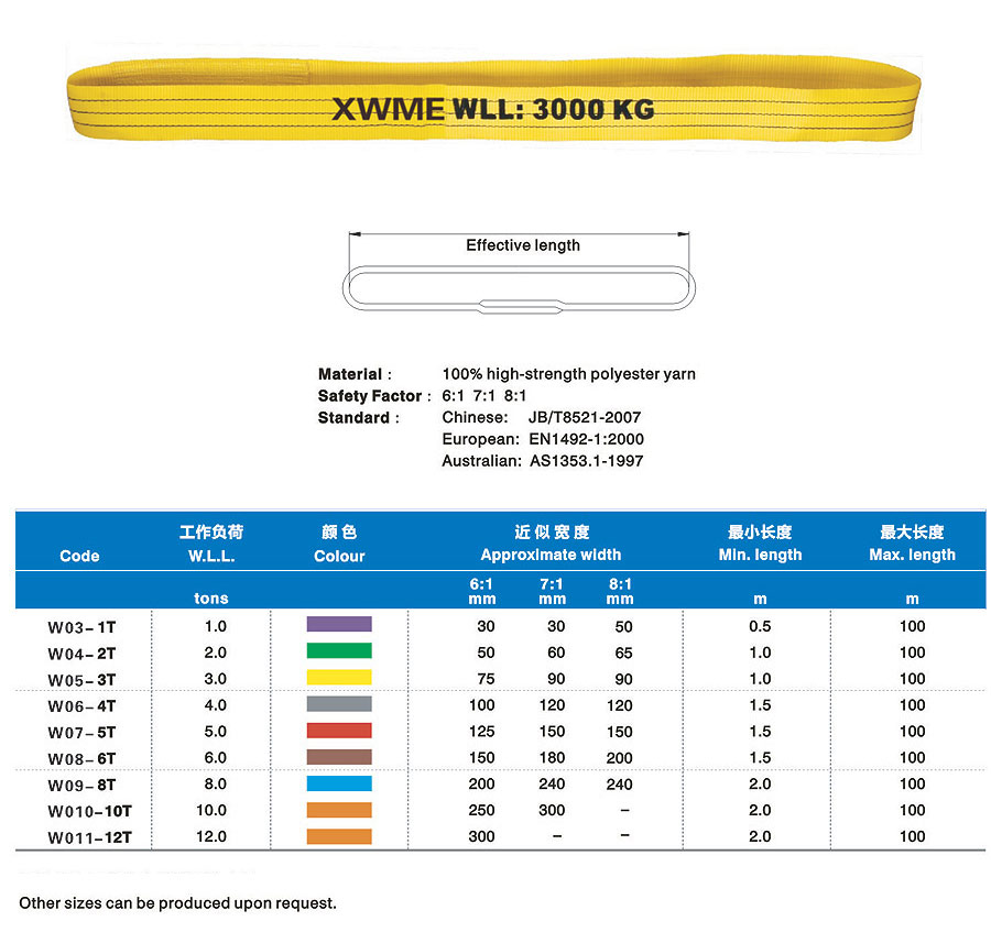 Synthetic fabric lifting belt (hereinafter refers to lifting belt) is a kind of soft lifting belt made of non-metallic materials and successor production of wire rope and chain in the lifting industry which is lighter and more convenient than similar metal and can solve the difficult problems such as large tonnage but small lifting space in the lifting process. The lifting belt is light, convenient and durable. Additionally, it has a noticeable earthquake effect, non-conductive performance, anti-corrosion and protects hanging items from being scratched. Many fracture experiments proved that lifting belt almost inflict zero reverse damage to metallic rope chain. The lifting belt adopts international standard colors to distinguish carrying tonnage. In the application process, carry tonnage can be distinguished by lifting belt jacket color if label on lifting belt wears Synthetic fabric lifting belt was used worldwide in the early days and has an application history spanning over fifty years. After being popularized in China for more than twenty years, it has gradually replaced wire rope rigging and chain rigging in many industries.