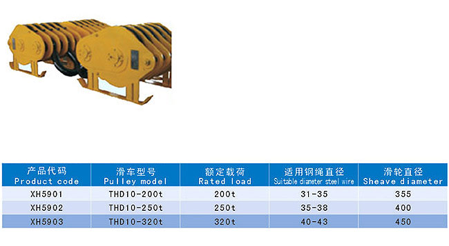Tackle is divided into single-wheel tackle, double-wheel tackle and multiple –wheel tackle according to wheel number; it is also classified into hook tackle, chain ring tackle, ring tackle and hanging beam tackle according to the connection way between tackle and hanging objects. General speaking, most of small or medium sized tackles fall into hook tackle, chain ring tackle and ring tackle while large sized tackles are usually ring tackle or hanging beam tackle; it is categorized into tackle with sliding bearing mounted between axles and tackle with rolling bearing mounted between axles according to the joint of wheel and axle; it can be divided into opened tackle and closed tackle according to splint. The splint of opened tackle can be opened to facilitate installing cable and most of opened tackles are single wheel tackle which is used as guide tackle at the bottom of standing derrick; it can be divided into fixed tackle and movable tackle according usage way. It is convenient to use tackles which can be widely used in places such as factory, mine, agriculture, electricity power, construction, wharf, dock, machine installation in warehouse and cargo lifting in a manual and mechanical way.