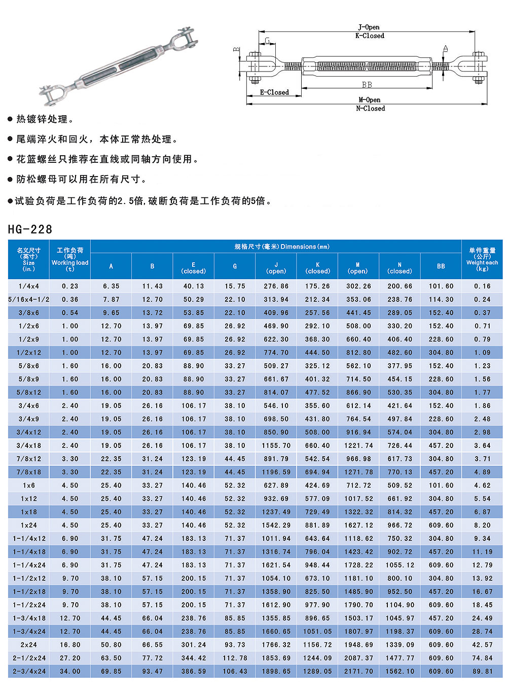 American-style J-J Turn Buckle