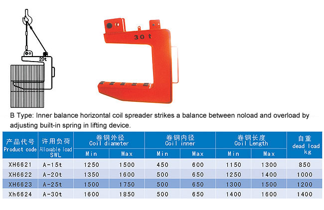 The company undertakes projects such as design, production and processing of large lifting device and meets the demands of different industries. The lifting devices include: slab lifting device, plate lifting device, steel coil lifting device, folktruck steel coil lifting device, container spreader, hanging beam and suspensory rigging and other supporting tools used in port hoisting, shipyard, metallurgy, heavy business and other hoisting operation. Our products boast rational design, high quality and stable performance and passed China CCS Certification. As a result, our products have won recognition from our customers by virtue of safety and reliable performance.