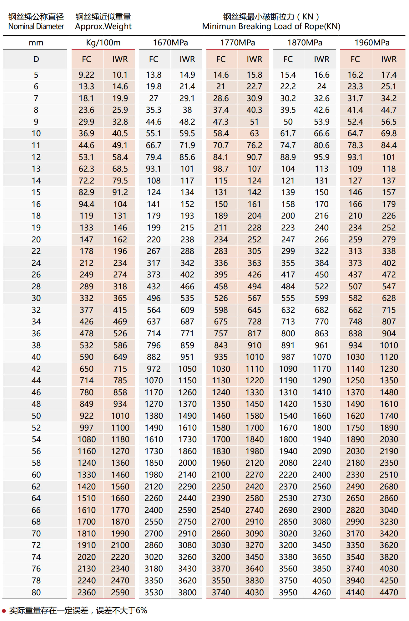 6X19S+FC | 6X19S+IWR | 6X19W+FC | 6X19W+IWR
