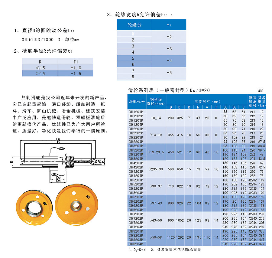 滑車按輪數(shù)的多少分為單門滑車,雙門滑車和多門滑車。按滑車與吊物的連接方式可分為吊鉤式滑車,鏈環(huán)式滑車,吊環(huán)式滑車和吊架式滑車四種。一般中小型的滑車多司于吊鉤式、鏈環(huán)式和吊環(huán)式,而大型滑車采用吊環(huán)式和吊梁式。按輪和軸的接觸不同可分為輪軸間裝滑動(dòng)軸承及滾動(dòng)軸承兩種。按夾板是否可以打開(kāi)來(lái)分,有開(kāi)口滑車和閉口滑車。開(kāi)口滑車的夾板是可以打開(kāi)的,便于裝繩索,一般的都是單門滑車,它常用于扒桿底腳處作導(dǎo)向滑車用?;嚢词褂玫姆绞讲煌址譃槎ɑ嚭蛣?dòng)滑車。使用方便,用途廣泛,可以手動(dòng),機(jī)動(dòng)。主要用于工廠、礦山、農(nóng)業(yè)、電力、建筑的生產(chǎn)施工,碼頭、船塢、倉(cāng)庫(kù)的機(jī)器安裝,貨物起吊等。