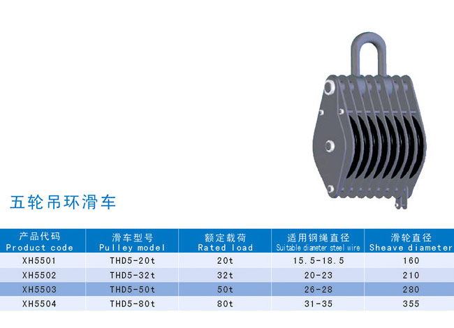 滑車按輪數(shù)的多少分為單門滑車,雙門滑車和多門滑車。按滑車與吊物的連接方式可分為吊鉤式滑車,鏈環(huán)式滑車,吊環(huán)式滑車和吊架式滑車四種。一般中小型的滑車多司于吊鉤式、鏈環(huán)式和吊環(huán)式,而大型滑車采用吊環(huán)式和吊梁式。按輪和軸的接觸不同可分為輪軸間裝滑動(dòng)軸承及滾動(dòng)軸承兩種。按夾板是否可以打開來(lái)分,有開口滑車和閉口滑車。開口滑車的夾板是可以打開的,便于裝繩索,一般的都是單門滑車,它常用于扒桿底腳處作導(dǎo)向滑車用。滑車按使用的方式不同又分為定滑車和動(dòng)滑車。使用方便,用途廣泛,可以手動(dòng),機(jī)動(dòng)。主要用于工廠、礦山、農(nóng)業(yè)、電力、建筑的生產(chǎn)施工,碼頭、船塢、倉(cāng)庫(kù)的機(jī)器安裝,貨物起吊等。