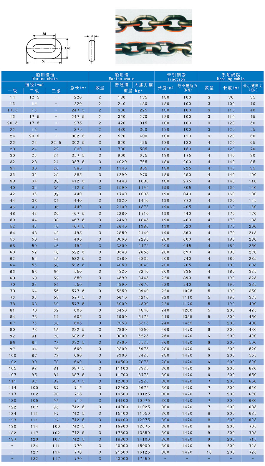 船用錨鏈、船用錨、牽引鋼索、系泊繩纜